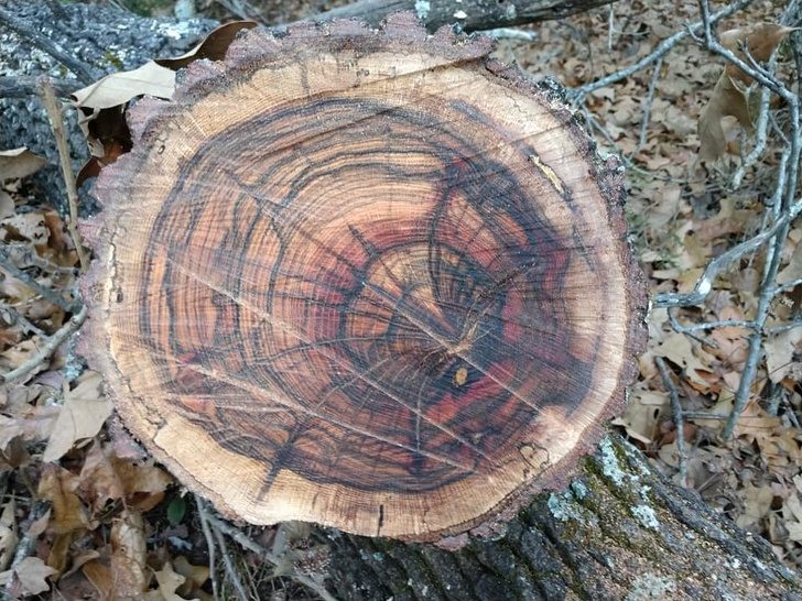 10. Годовые кольца этого дуба в разрезе напоминают паука