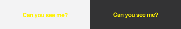 Однако жёлтый шрифт хорошо работает на тёмно-сером или чёрном фоне: это объясняет, почему большинство дорожных предупреждений создаются с использованием жёлтого и чёрного.