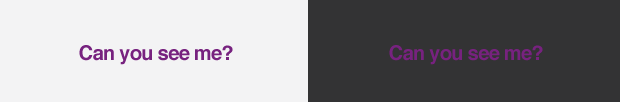 То же самое с синим и сиреневым, которые имеют тёмное значение контрастности. Они хорошо смотрятся на белом фоне, но ужасно на сером или чёрном.