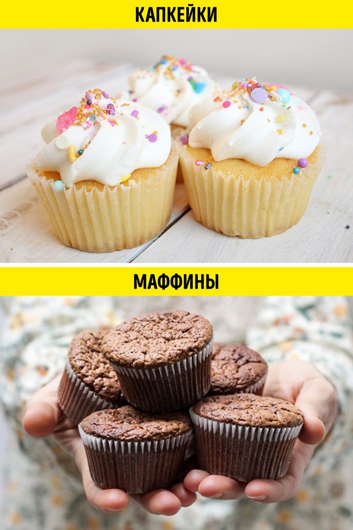 Капкейки более пышные и покрыты кремовой глазурью. Маффины же редко сочетаются с глазурью, но в их тесто добавляют сухофрукты, шоколад или орехи.