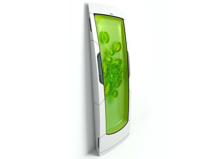 Холодильник вещь привычная и даже если меняются детали, не меняется концепция в целом. Тем интереснее взгляд российского дизайнера Юрия Дмитриева. Его концепт, показанный на конкурсе, который проводит Electrolux Design Lab, очень необычен. Это неглубокий высокий шкаф без двери. Внутри нет традиционных полок, вместо них он заполнен биогелем. Продукты кладут прямо в эту массу, запихивая в любом месте. По замыслу изобретателя гель не будет прилипать к рукам и продуктам и сможет удерживать все кастрюльки и баночки.