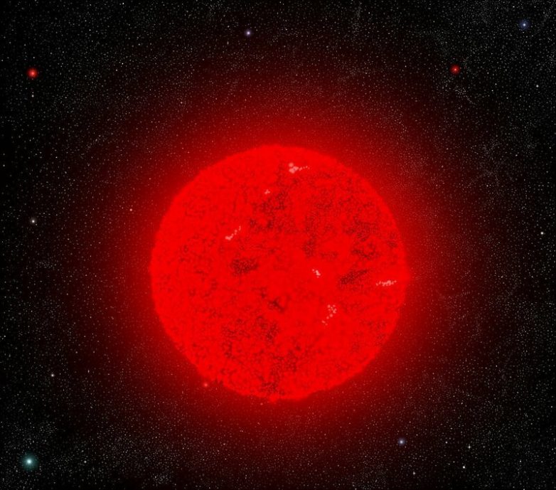Бетельгейзе — красный сверхгигант, являющийся девятой ярчайшей звездой на ночном небе (самая яркая звезда на небе — Сириус), и второй ярчайшей звездой в созвездии Ориона. Эта звезда находится на расстоянии 650 световых лет от Земли, в 80 000 раз ярче и в 20 раз больше массы нашего Солнца. Радиус Бетельгейзе составляет около 820 700 000 км. Ожидается, что красные сверхгиганты, имеющие такой же размер, как и Бетельгейзе, скоро закончат свою жизнь, так как быстро сжигают своё топливо. Температура поверхности составляет около 3600 градусов.