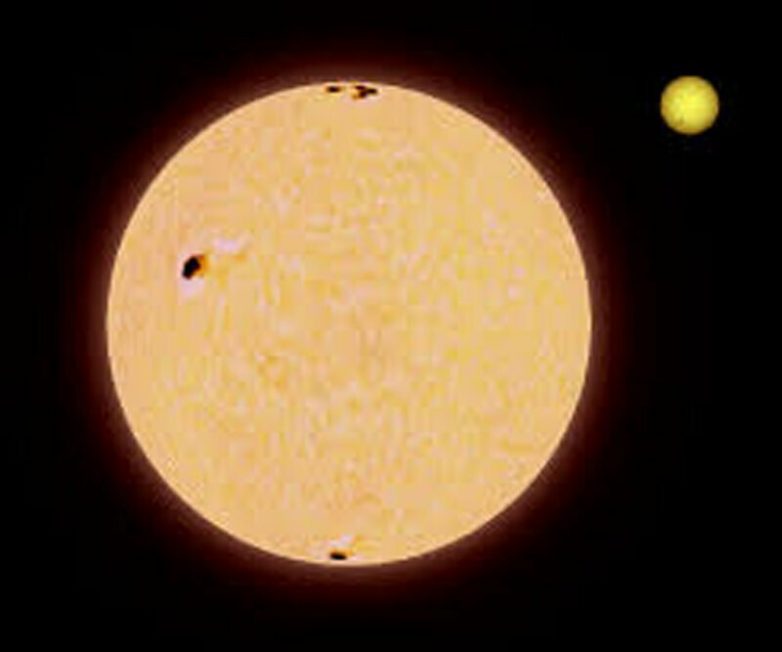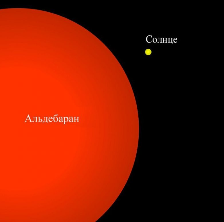 Альдебаран — оранжевая гигантская звезда, расположенная примерно в 65 световых годах от созвездия Тельца. Альдебаран в 45 раз больше нашего Солнца, радиус которого составляет около 30 740 000 км. Температура поверхности составляет приблизительно 3 700 градусов. Альдебаран светит с 425-кратным свечением Солнца.