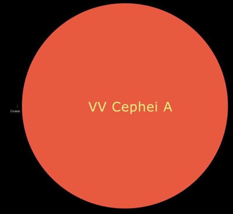 Расположенная в созвездии Цефей, VV Цефея находится в 5000 световых годах от Земли. VV Цефея, также известная как HD 208816. Температура поверхности составляет приблизительно 3600 градусов. Эта красная гипергигантская звезда, по оценкам учёных находится между 1 050 и 1 100 раз больше Солнца.