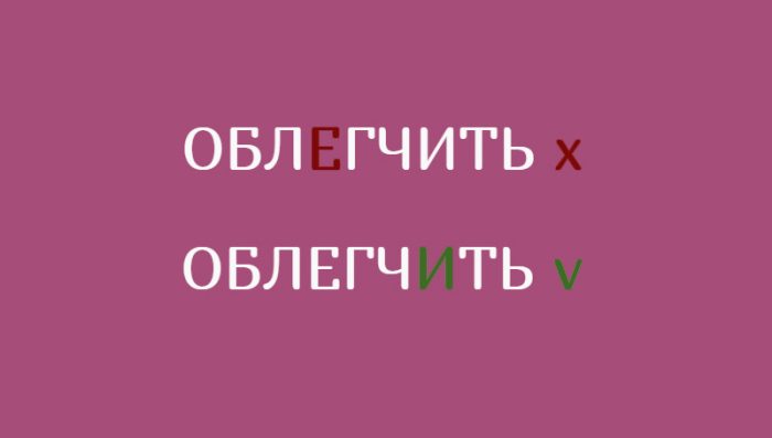 Часто в словосочетании «облегчить работу» люди ставят ударение на первый слог – видимо, думая, что проверочное слово у этого глагола – «легче». Однако это не так. Ударение надо ставить на букву «И». То же самое происходит при сочетании этого глагола со всеми именами собственными в настоящем и будущем времени: «я облегчу», «они облегчат», «он облегчил», «они облегчили». Ни в одном из таких слов ударение не падает на корень «легч». Чтобы запомнить, где ставить ударение, достаточно заменить слово «облегчить» на синоним «упростить». Мы же не говорим «упрОстить»!