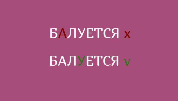Одна из самых распространенных ошибок в ударении касается глагола «балуется». Очень часто можно слышать «ребёнок бАлуется», «я не курю, а лишь иногда бАлуюсь». Однако в разговорном слове «баловаться», а также в других родственных ему словах – например, «балованный», «баловать», «балуешься» и т.д. – ударение никогда не падает на первый слог. Так что малыш не бАлуется, а балУется. И родители его вовсе не избАловали, а избаловАли.