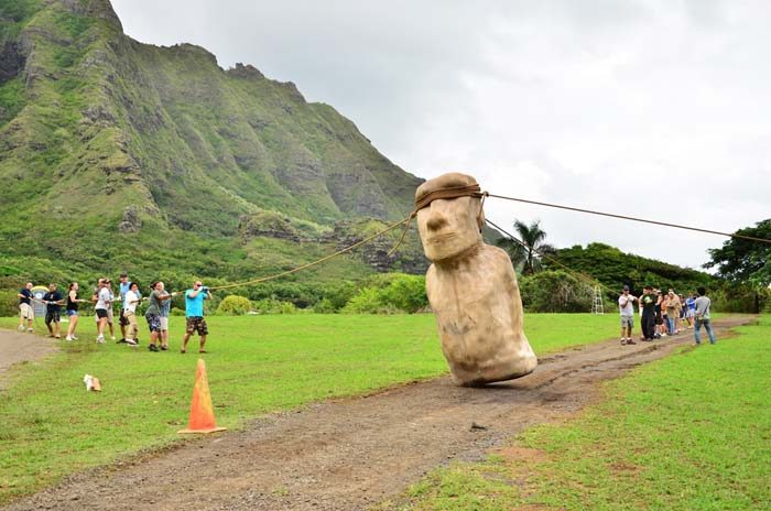 Порой «неуместность» артефакта объясняется тем, что мы с современной точки зрения недооцениваем догадливость древних строителей. Ведь иногда очень простые с технической точки зрения решения могут оказаться настолько эффективными, что кажутся со стороны настоящим чудом. Так, например, в 1986 году чешский инженер Павел Павел вместе с Туром Хейердалом доказал, что знаменитые статуи на острове Пасхи можно было перемещать простым, но остроумным способом – кантовать (переваливать с одной стороны на другую). 17 человек, пользуясь только веревками, достаточно быстро заставили «шагать» 10-тонного каменного гиганта. Именно так, кстати, они и перемещались от карьера к месту установки, согласно древним легендам – «сами шли».