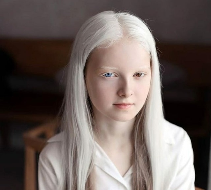 Это изображение не отредактировано, у девочки действительно пронзительно-голубые глаза
