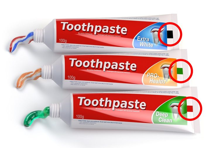 В действительности же эти прямоугольники не имеют ничего общего с ингредиентами в составе пасты. Они используются на производстве в качестве контрастной светометки, благодаря которой автомат распознает точное место, где нужно произвести надрез.