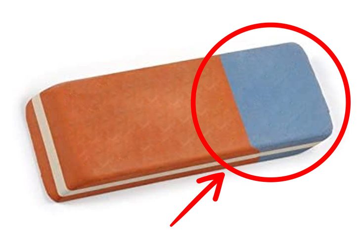 Миф. Синяя часть стирательной резинки изначально была предназначена для удаления надписей карандашом с плотной бумаги, а красная — с обычной бумаги.