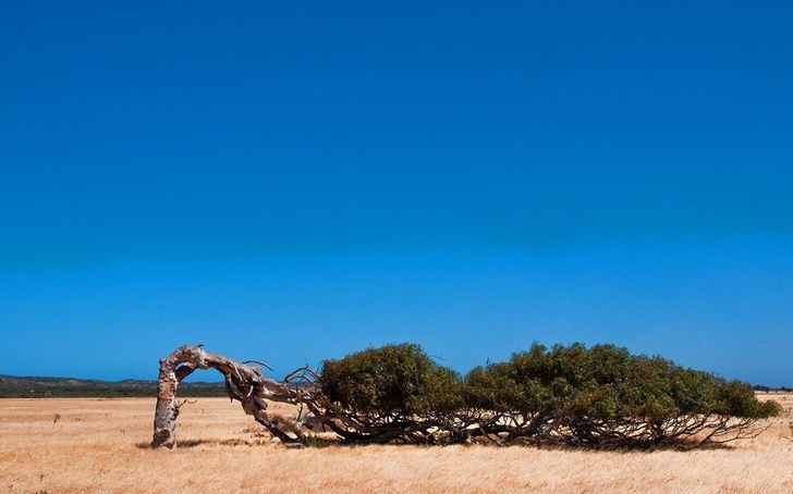 В Западной Австралии дуют такие сильные ветра, что одиноко стоящие деревья сгибаются и растут горизонтально