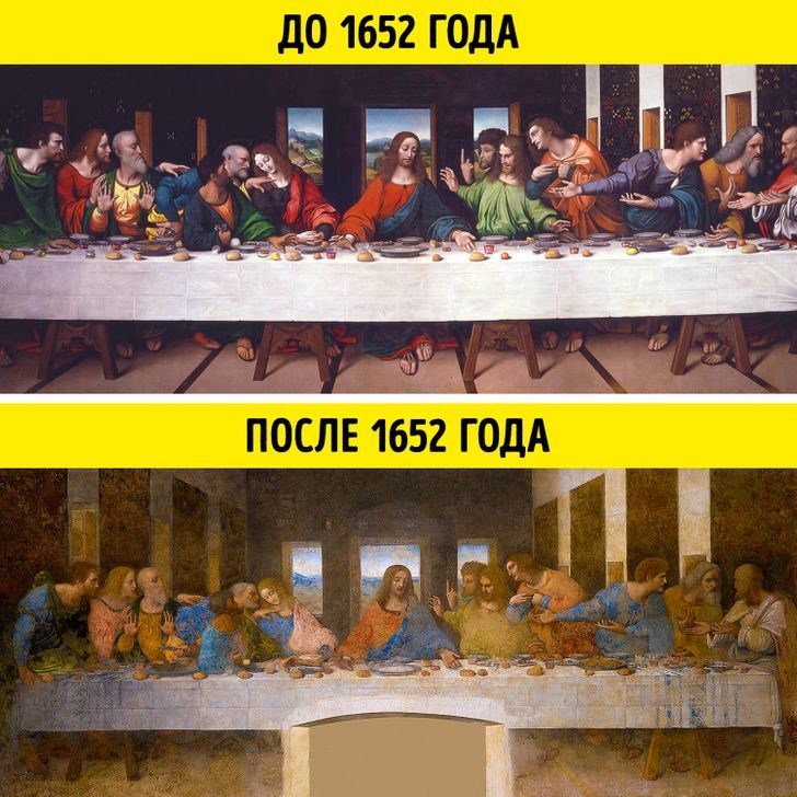 Леонардо да Винчи изобразил ноги Иисуса, однако в 1652 году во время ремонта церкви было решено добавить еще один дверной проем. Поэтому знаменитая фреска «Тайная вечеря» лишилась фрагмента нижней части.