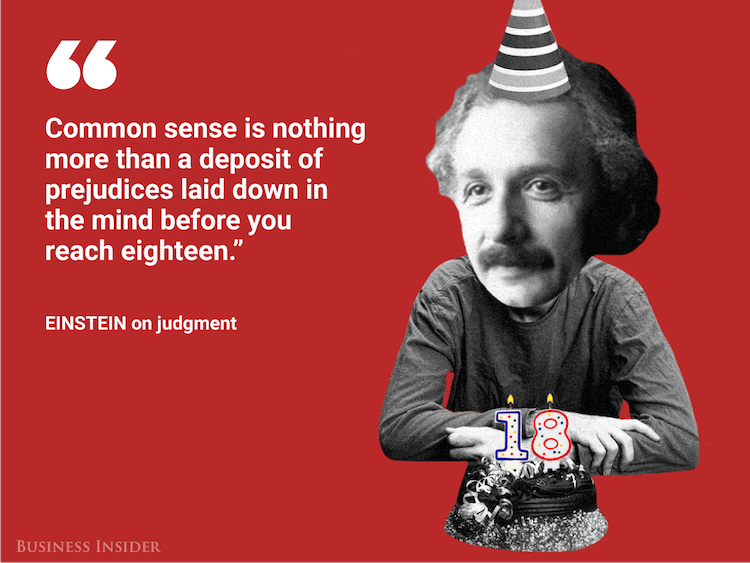 Перевод: Здравый смысл — это не более чем предрассудок, заложенный в разуме до того, как вам исполнится восемнадцать.