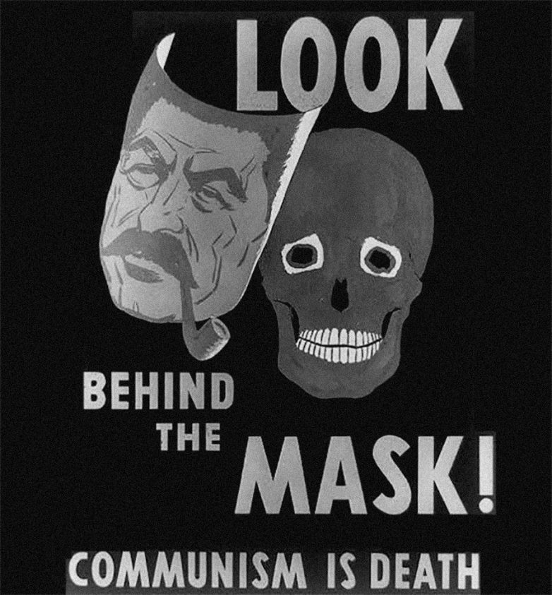 «Посмотри за маской. Коммунизм — это смерть». Этот плакат с изображением маски Иосифа Сталина и черепа сзади в настоящее время доступен в Библиотеке Конгресса.