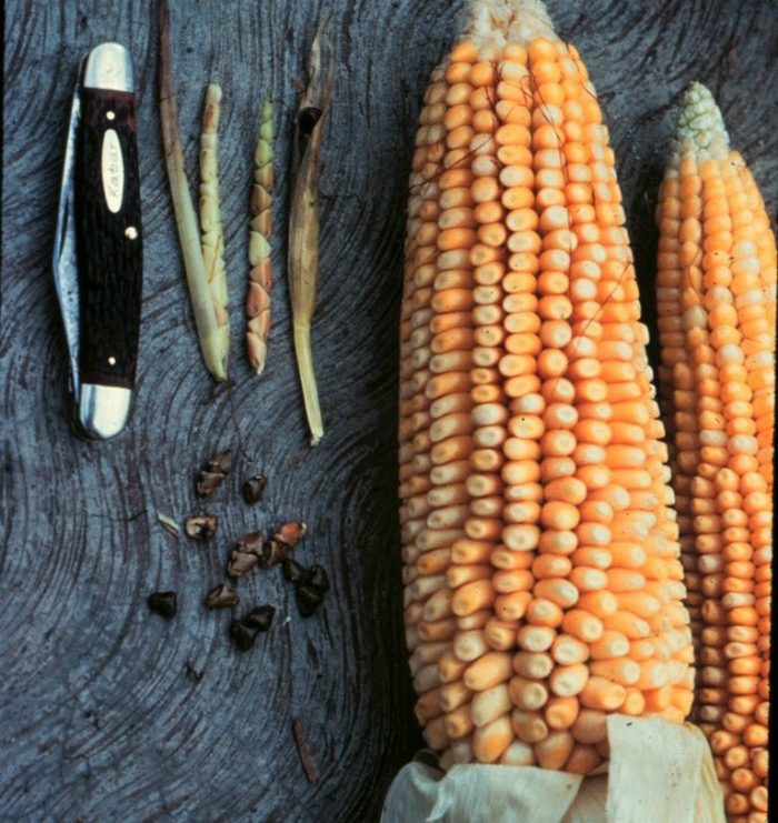 Эти маленькие ростки слева — кочаны первой кукурузы, которую начали культивировать еще 9000 лет назад. Стоит отметить, что за это время фермеры очень продвинулись в вопросах селекции.