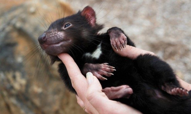 Некоторые думают, что тасманский (тасманийский) дьявол – это вымышленное существо, придуманное воображением аниматора для Warner Brothers. Но они на самом деле существуют. Размеры этого животного варьируются в зависимости от питания, возраста и среды обитания. Крупные самцы могут достигать 80 см и весить 12 кг. Тасманский дьявол – коренастое животное коричнево-черного цвета с белыми пятнами, розовым пятачком, большой головой и мощной челюстью — она позволяет им есть довольно крупных животных: кенгуру, овец и кроликов, хотя они и не брезгуют насекомыми, личинками, змеями и растениями. В отличие от своего мультяшного коллеги, тасманский дьявол — существо довольно медлительное, хотя и весьма шумное.