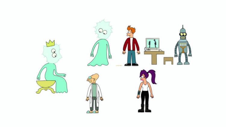 Кадр из мультсериала «Футурама», 15 серия 7 сезона. Перед вами герои в 2D