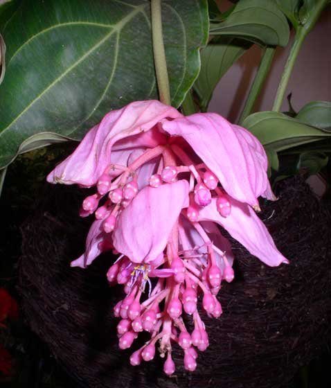 Мединилла. Нежно-розовая мединилла – красивейшее экзотическое растение. Найти ее можно в тропических лесах Филиппин и Мадагаскар. Ботаники дали прозвище этому цветку «прекрасная». В любую пору года она остается изысканной, однако пред вами предстанет невероятное зрелище именно в период цветения. Свисающие соцветия состоят из нескольких ярусов. Это крупные бледно-розовые листья с большим количеством маленьких розовых цветочков. На сегодняшний день в мире насчитывается примерно 400 видов мединиллы. Небольшой букет из таких цветов обойдется примерно в 700 долларов.