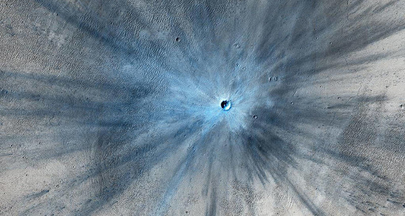 Атмосфера Марса очень тонкая, она составляет примерно 1% от земной. Из-за этого у планеты очень плохой защитный барьер для сжигания космического мусора. Это означает, что через нее проходит множество крупных метеоритов. За время всей своей миссии, аппарат MRO обнаружил более 800 новых ударных кратеров с помощью камеры СТХ. После того, как CTX заметил их, ученые сделали более детальные изображения с помощью HiRISE.Данный кратер имеет диаметр в 30 метров. Обломки, выброшенные наружу во время удара, могут рассказать ученым больше о самом событии. Так исследователи установили, что взрыв был настолько мощным, что некоторые обломки разлетелись на 15 километров от места столкновения.