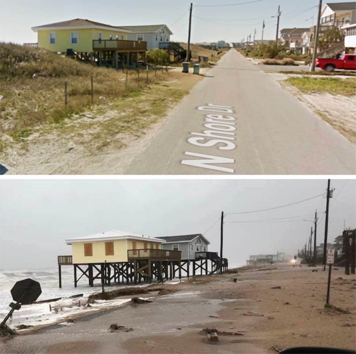 Улица Серф-Сити, Северная Каролина, до и после урагана «Флоренция»