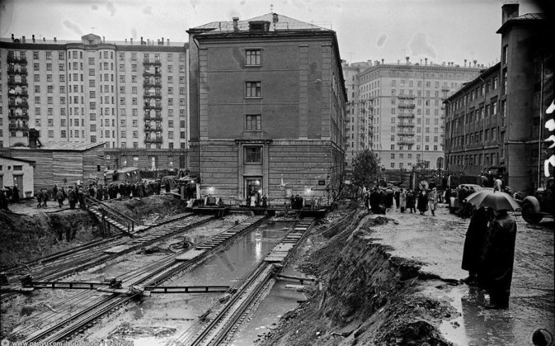 Согласно Генеральный план реконструкции Москвы, В 1935 году власти решили расширить магистральные улицы и некоторые здания сдвинули вглубь жилого массива. Работами руководил советский инженер Эммануил Гендель. Во время движения домов жители не только оставались внутри, но и могли пользоваться всеми удобствами.
