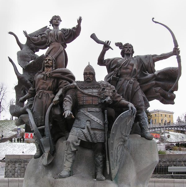 Скульптурная композиция, посвященная основателям древнего Киева — Кию, Щеку, Хориву и их сестре Лыбиди на площади Независимости, Киев.