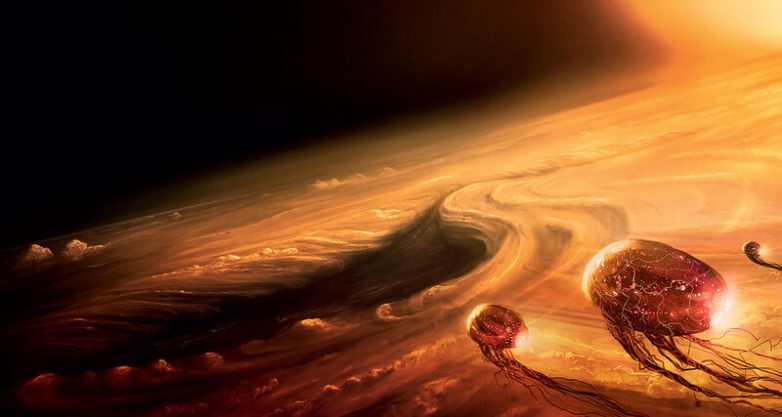 Наша голубая, зеленая планета подходит для нас замечательно, но жизнь может не нуждаться ни в лесах и океанах, ни в кислороде, ни даже в твердой поверхности. В кубометре воздуха на высоте 10 км содержатся тысячи бактериальных клеток, и многие из них не просто выживают, но и метаболизируют. Еще в конце 1960-х астрофизик и популяризатор астрономии Карл Саган описал воздушных существ, которые теоретически могли бы обитать в сравнительно спокойных верхних слоях плотной и горячей атмосферы Венеры, а позднее — и возможную жизнь на газовом гиганте вроде Юпитера. Ученый обозначил главные контуры юпитерианских экосистем, начиная с фотосинтезирующих организмов и заканчивая хищниками и даже «экстремофилами», населяющими самые неблагоприятные ниши.