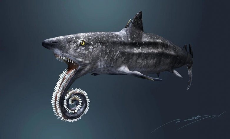 … или нет? Споры о том, где и как располагалась свёрнутая в бараний рог челюсть продолжаются до сих пор. Только в 2008 году нашлась более-менее рабочая гипотеза. Предполагают, что спираль — это глоточные зубы. То есть они находились внутри пасти, их не было видно, пока рыба не разинет как следует свой рот.