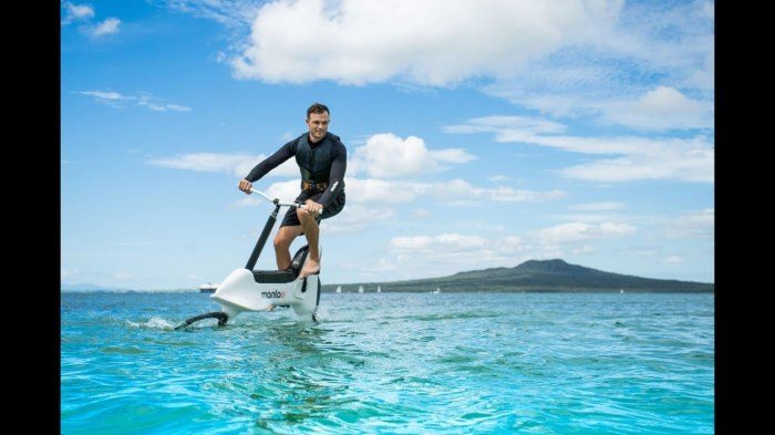Водный байк Hydrofoiler XE-1 с алюминиевой рамой и двумя подводными крыльями из углеводородного пластика — устойчивое и комфортное средство передвижения. Работает он по принципу велосипеда, на котором нужно крутить педали, передвигаясь при этом над водой. Работает Hydrofoiler XE-1 за счет съемной батареи, заряда которой хватает на час.
