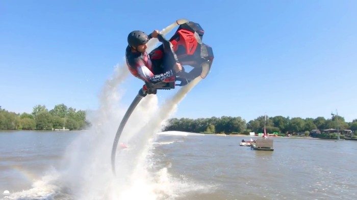 Аквабайк Flyride дарит возможность испытать возможность гидрополета. В пульт управления этого необычного транспортного средства интегрированы автоматические системы, которые позволят уже в первую поездку совершать невероятные кульбиты и повороты прямо в воздухе. Система электронной стабилизации позволяет уверенно чувствовать себя во время полета на любых уровнях сложности, а также выполнять сложнейшие запрограммированные трюки с помощью нажатия всего одной кнопки на пульте управления.