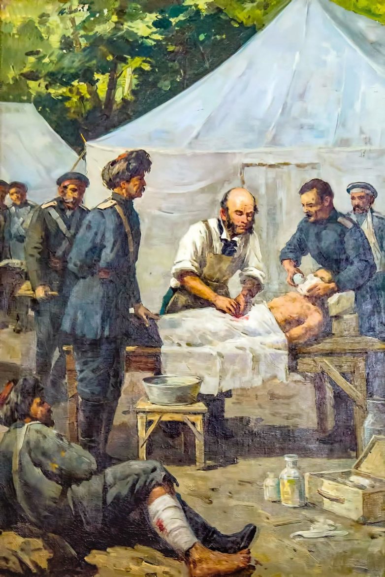 Пирогов провел более десяти тысяч операций, используя эфирное обезболивание. Многие из этих операций пришлись на тяжелую для России Крымскую войну 1853-1856 годов.