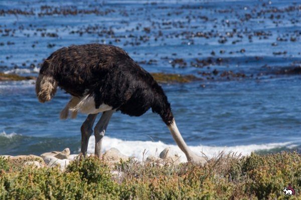 Так показалось римскому ученому Плинию Старшему, и он внес факт в энциклопедию. Его труды вообще не отличались точностью, но этот миф протянул дольше других. А ведь страус не зарывает голову в песок – не умеет, да и задохнется. Зато часто ложится и кладет шею на землю, чтобы дать ей отдых. Чуя опасность, он тоже ложится и прижимает голову к земле – слушает, кто идет. Так что смело пугай страусов в вольерах с бетонным полом: им ничего не будет.