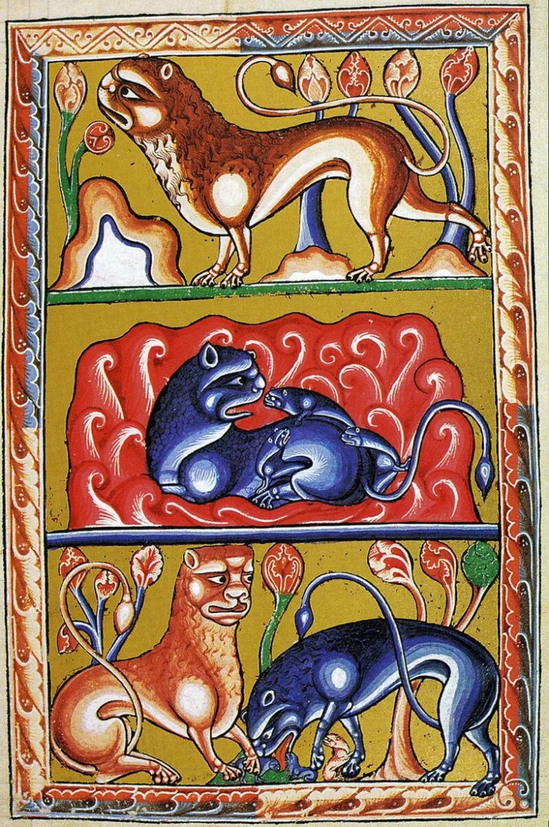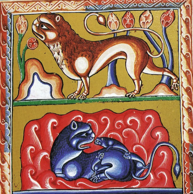 Удивленные львы. Ashmole Bestiary, 1511 год