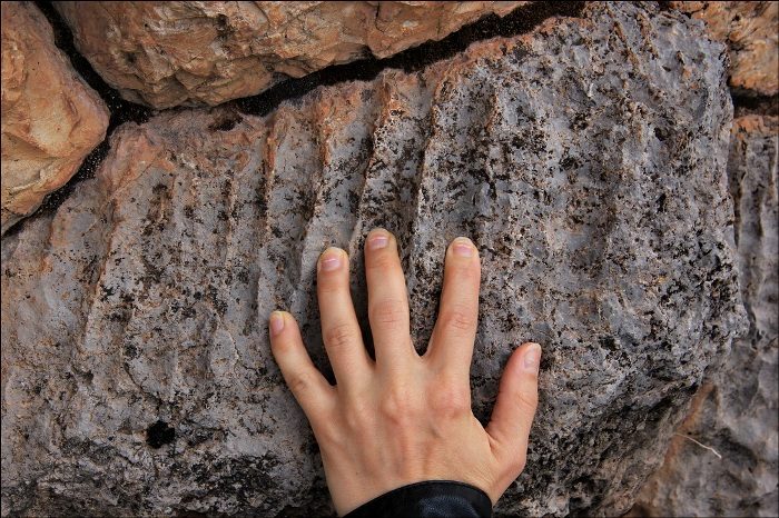 Большинство горок имеют камни с обработанными сторонами, причем в самых разных видах — от просто сглаженных граней до идеально отшлифованных отвесов внушительных монолитов. Отдельный интерес представляют камни, в которых четко просматриваются углубления, которые иногда сравниваются даже с отпечатками огромных пальцев рук: камни действительно кто-то «помял» в ладони.