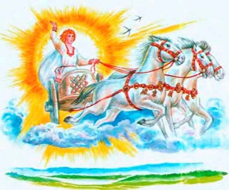 По древнерусским памятникам, солнце и Даждьбог – синонимы. Солнцем называет Даждьбога в 1114 году Ипатьевская летопись: «Солнце же царь, сын Сварога, он же Даждьбог». В уже упомнятом «Слове о полку Игореве» русский народ назван Даждьбожьими внуками.