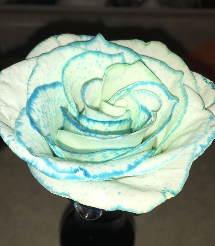 Что произойдет, если добавить синий пищевой краситель в воду, в которой стоит белая роза