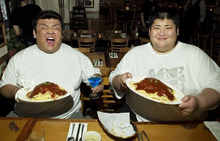 Сумоисты потребляют 7 тыс. ккал в день, но не страдают от болезней, связанных с ожирением. У них нормальное давление и уровень холестерина. Дело в том, что весь их жир — подкожный, а висцерального практически нет. Висцеральный жир опасен тем, что накапливается глубоко внутри и мешает нормальной работе внутренних органов, что влечет за собой различные заболевания. Ежедневные 5-часовые тренировки профессиональных сумоистов — вот что предотвращает накопление опасного висцерального жира.