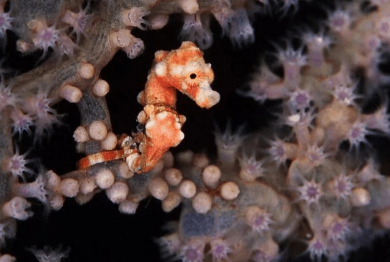 Камуфляж конька Дэниса оказался настолько эффективным, что животное было обнаружено лишь благодаря тому, что вместе со своим домом – веточкой горгонии, оказался в лаборатории.