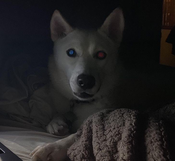 «У моего пса гетерохромия, и так выглядят его глаза при вспышке»