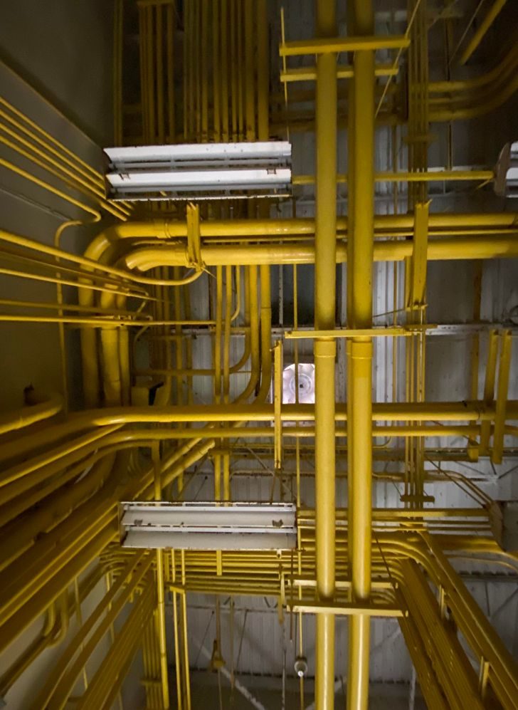 Эти трубопроводы в техническом помещении напоминают старую заставку Windows