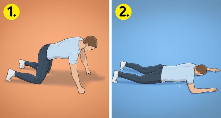 Итак, что делать, если вы подавились? Удары между лопаток в целом не очень эффективны. Вытолкнуть кусочек еды из горла поможет природный кашель и форсированный выдох, произведенный после глубокого и медленного вдоха. А пожарный и парамедик Джефф Рейман придумал специальный прием, состоящий всего из двух действий. Первое: встаньте на четвереньки, руки прямые, кулаками в пол. Второе: резко выкиньте руки вперед и упадите грудью на пол. Это заставит легкие одним махом вытолкнуть воздух, а вместе с ним — и то, что попало вам в горло.
