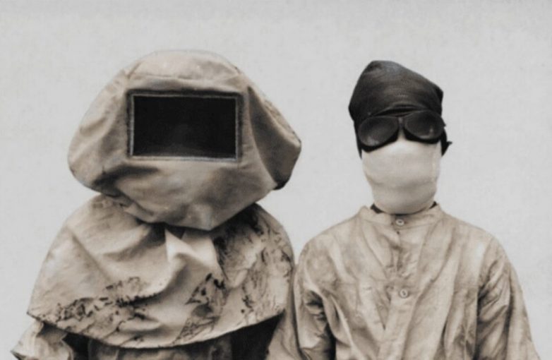 Вот такие костюмы носили во время вспышки бубонной чумы в Маниле в 1912 году