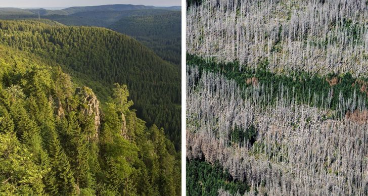 12. В связи с климатическими изменениями в национальном парке Харц в Германии участились нашествия жуков-короедов