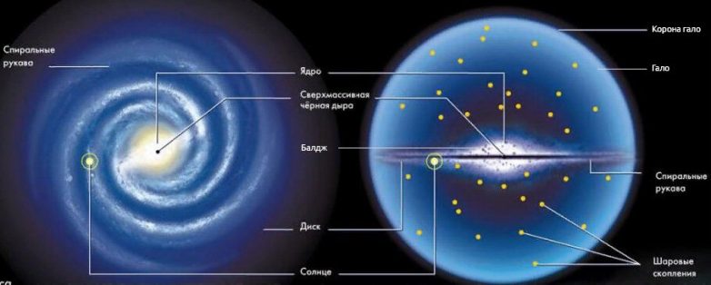 К сожалению, с Земли увидеть «сердце» нашей галактики не представляется возможным из-за того, что Солнечная система расположена как раз в такой точке Млечного Пути, что гигантские темные облака пыли загораживают собой ядро для наблюдателя. Когда вы любуетесь россыпью звёзд – этой сияющей «тропинкой» на небосводе, вы видите лишь малую часть нашей огромной галактики, диаметр которой – примерно 100 000 – 120 000 световых лет. Солнце располагается с внутренней стороны рукава Ориона, поэтому именно его-то мы и видим. А вообще пытаться представить, как выглядит родная галактика – всё равно, что сидеть в квартире и думать, как же выглядит весь многоквартирный дом? Но мы всё же попытаемся.