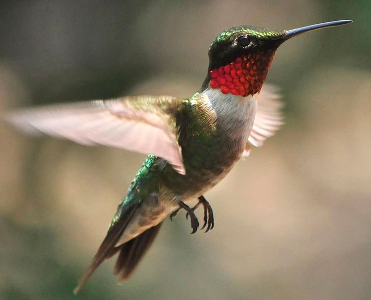 Рубиновогорлый колибри может, не останавливаясь, лететь 800 км подряд. Так как вес птицы маленький — всего 3 г, — перед перелетом она удваивает свою жировую массу, а за перелет тратит весь излишек калорий подчистую.