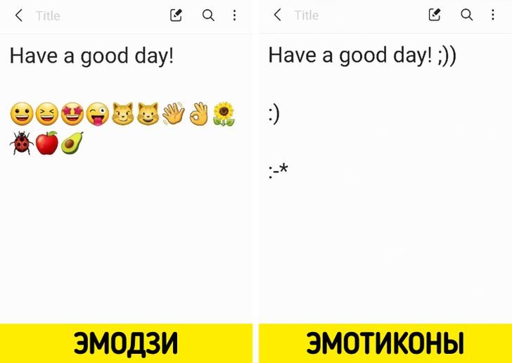 Казалось бы, это совершенно одно и то же. Но нет, у этих двух понятий разница есть, и довольно очевидная, хоть они и выполняют одинаковую роль. Эмодзи — это небольшие графические картинки, которые призваны сделать переписку в сети более эмоциональной и объемной. Выбор эмодзи в настоящее время огромен: различные выражения лиц, животные, профессии, явления природы, места, спорт и многое другое. А эмотикон — это картинка, созданная знаками препинания, цифрами или буквами.