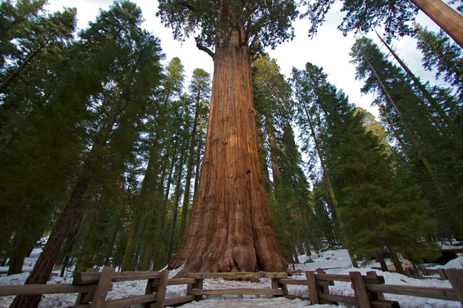 Секвойядендрон гигантский. Семейство: Кипарисовые. Высота: до 100 м. Самый высокий представитель секвойядендрона гигантского — «Генерал Шерман» достигает 83,8 м в высоту.