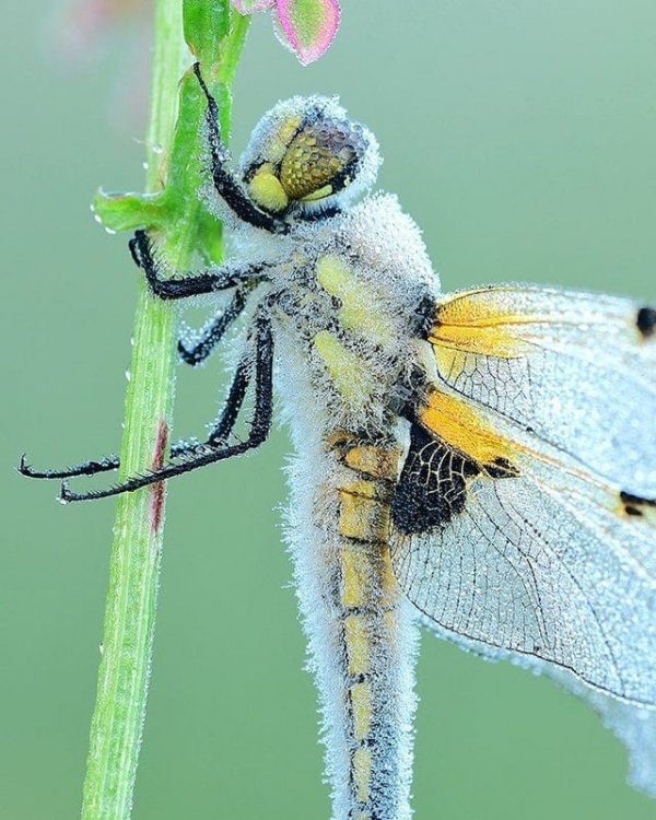Стрекоза заморожена. По взгляду видно.