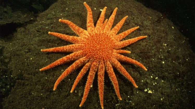 Подсолнечник — второй по величине вид морских звезд в мире. Зачастую в диаметре они превышают один метр, при этом могут иметь до 24 лучей. Еще недавно они были весьма распространены по всему северо-востоку Тихого океана от Аляски до Южной Калифорнии. В настоящее время по оценкам ученых их количество сократилось на 90%.