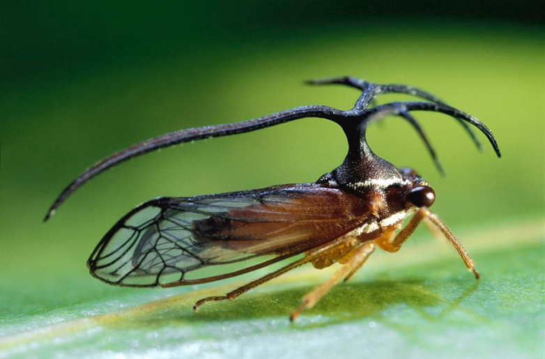Насекомое размером с муху, в общем-то, лишь горбом со странными выростами и примечательно. Зато какие только формы эти выросты ни принимают! И изогнутые, и вздутые, и витиеватые — всё зависит от вида.